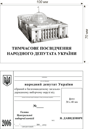Про зразок тимчасового посвідчення народного депутата України, обраного в багатомандатному загальнодержавному виборчому окрузі 26 березня 2006 року